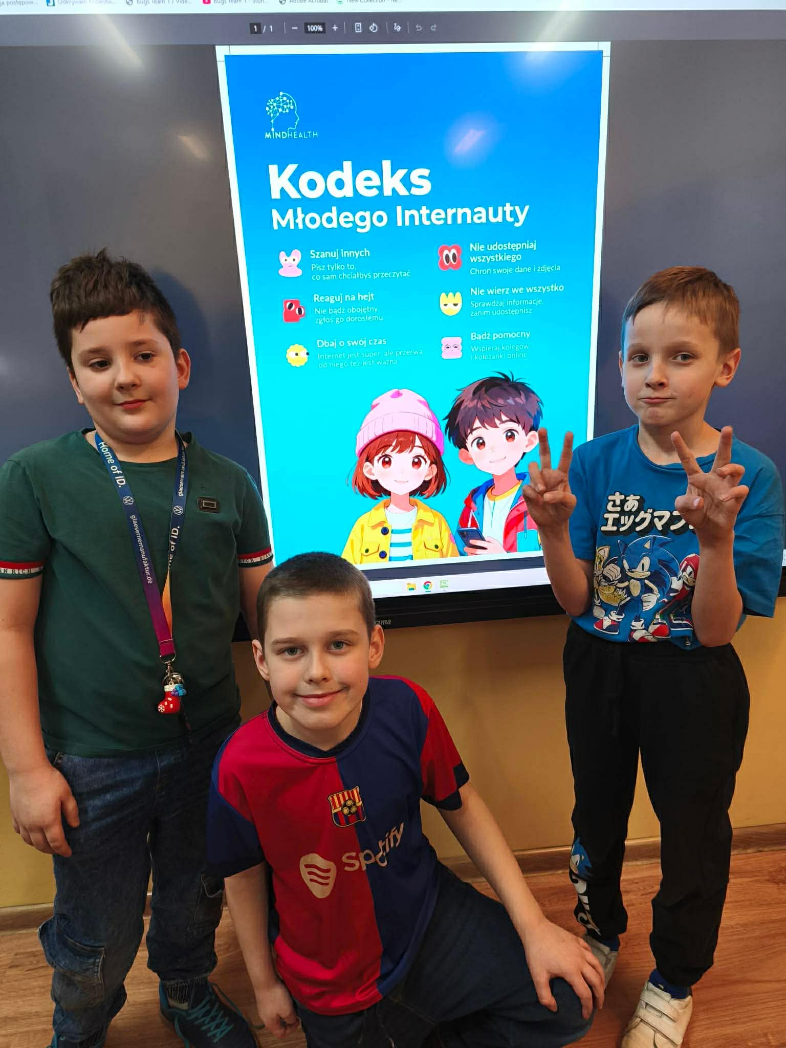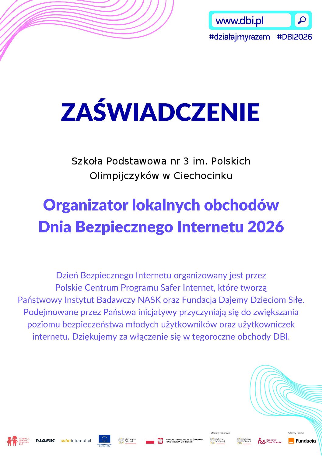 Odbyły się również pogadanki i rozmowy edukacyjne, podczas których poruszaliśmy tematy takie jak: ochrona danych osobowych, cyberprzemoc, hejt czy bezpieczne hasła. Celem naszych działań było uświadomienie dzieciom i młodzieży, jak ważne jest rozsądne i odpowiedzialne korzystanie z nowych technologii. Internet to wspaniałe narzędzie, ale tylko wtedy, gdy korzystamy z niego mądrze i bezpiecznie. Dziękujemy wszystkim uczniom i nauczycielom za zaangażowanie!